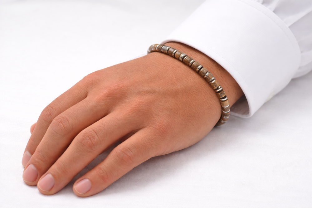 BRANSOLETKA 4/2 MM JASPIS OBRAZKOWY / HEMATYT