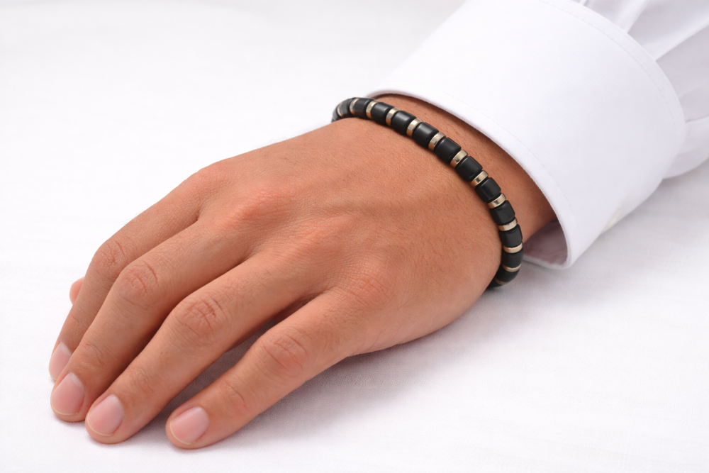BRANSOLETKA 4/2 MM ONYKS / HEMATYT