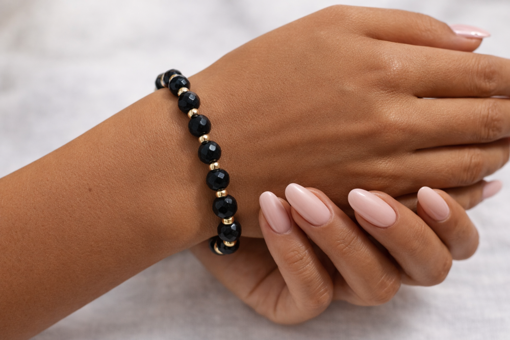 BRANSOLETKA 6 MM FASETOWANA ONYKS POŁYSK
