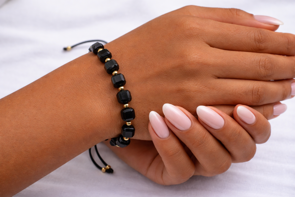 BRANSOLETKA 8 MM ONYKS KOSTKA FASETOWANA