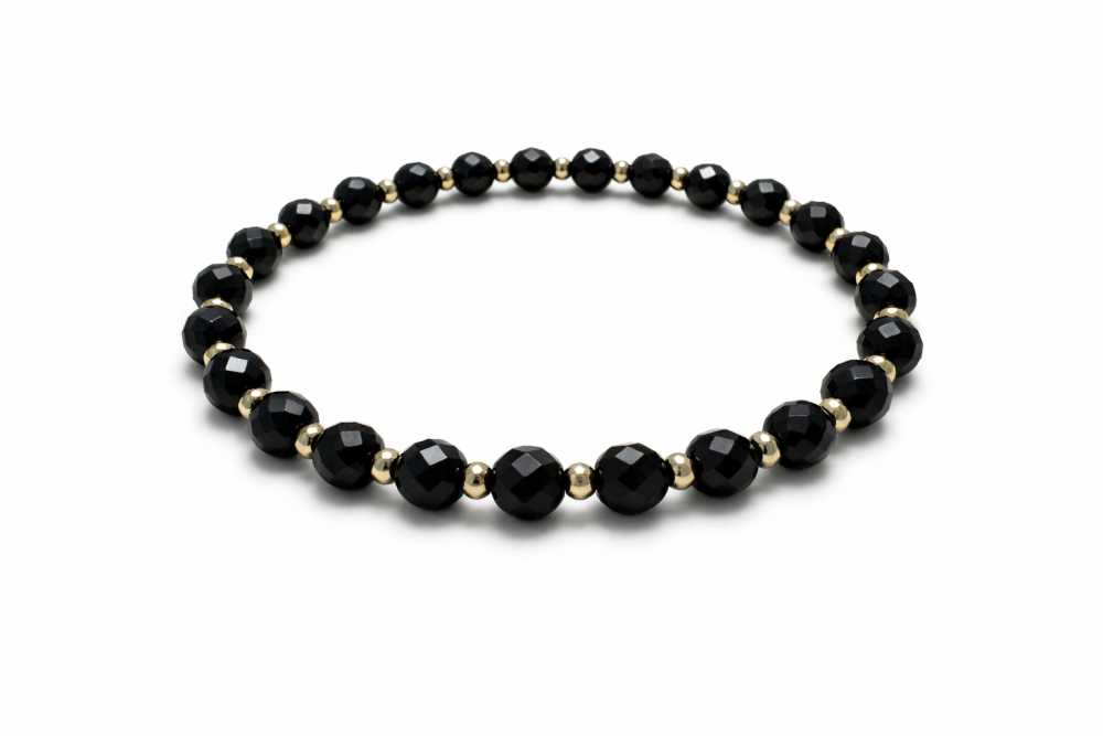 BRANSOLETKA 6 MM FASETOWANA ONYKS POŁYSK