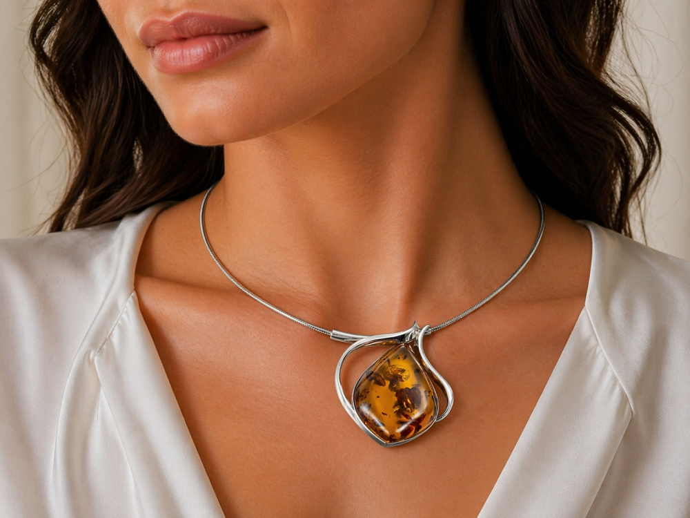 NASZYJNIK SREBRNY Z BURSZTYNEM 34,0 G