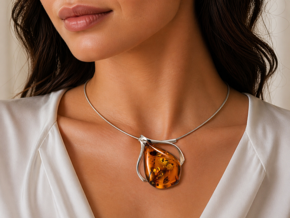 NASZYJNIK SREBRNY Z BURSZTYNEM 34,0 G