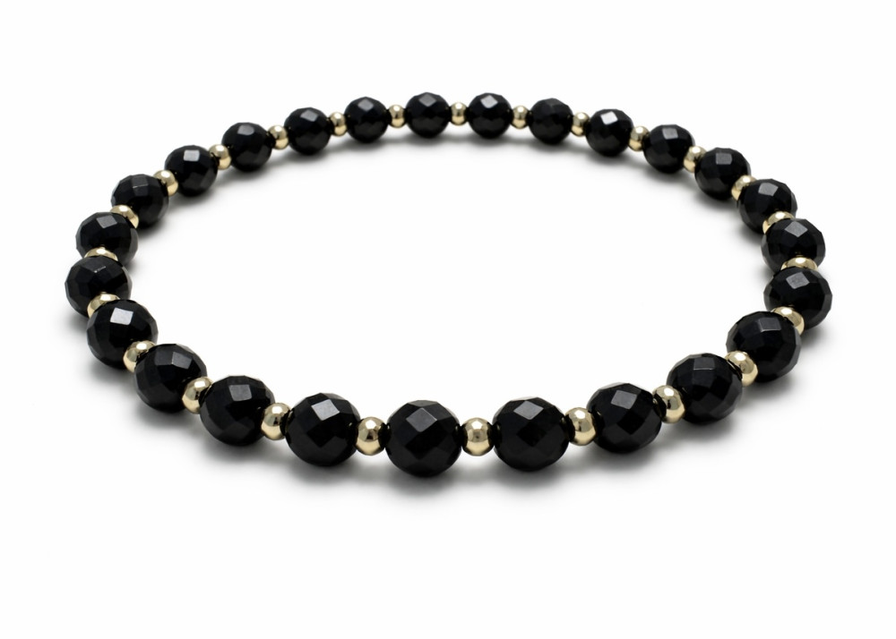BRANSOLETKA 6 MM FASETOWANA ONYKS POŁYSK