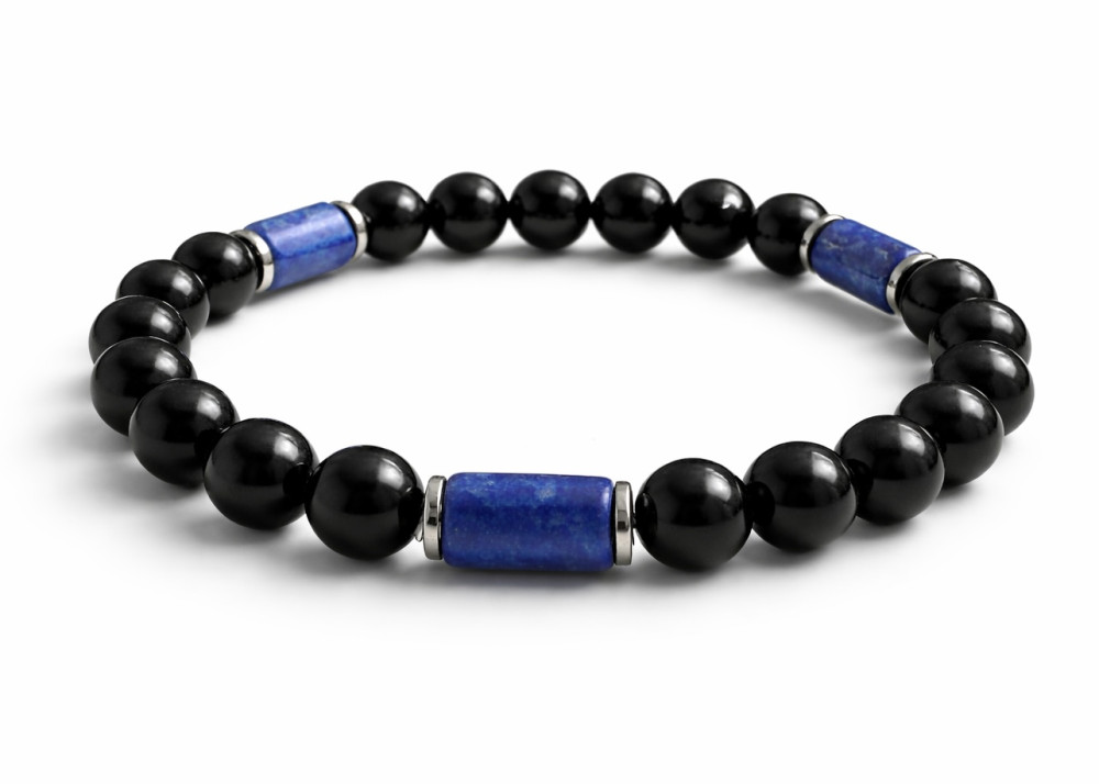 BRANSOLETKA 8 MM ONYKS POŁYSK / LAPIS LAZULI