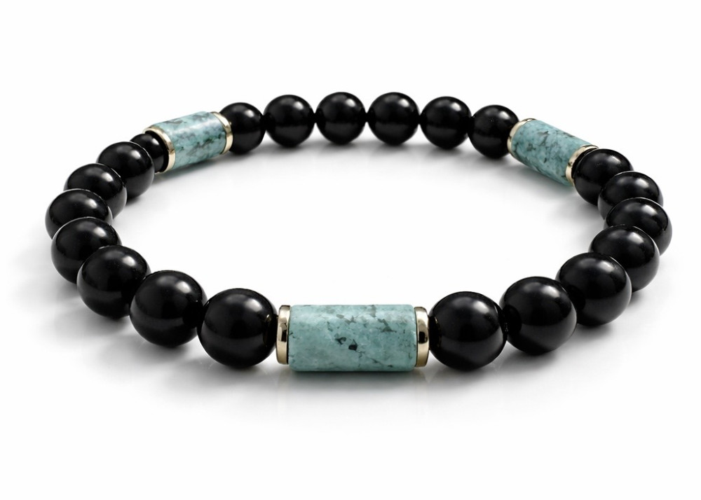 BRANSOLETKA 8 MM ONYKS POŁYSK / TURKUS AFRYKAŃSKI