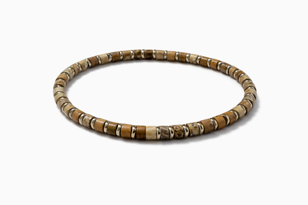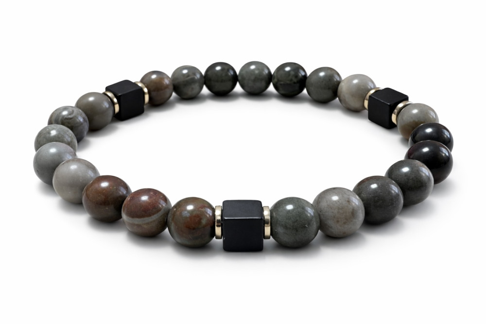 BRANSOLETKA 8 MM JASPIS MORSKI BRĄZOWY