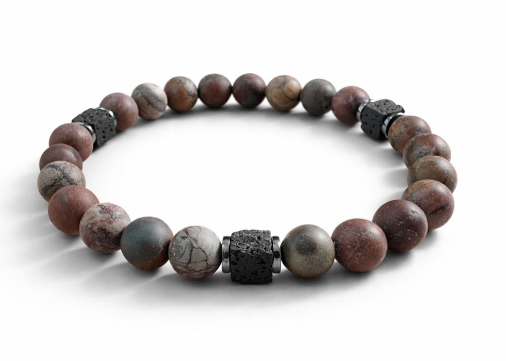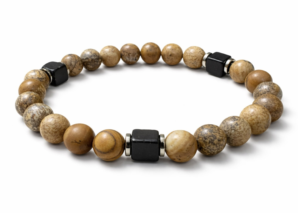 BRANSOLETKA 8 MM JASPIS OBRAZKOWY MAT