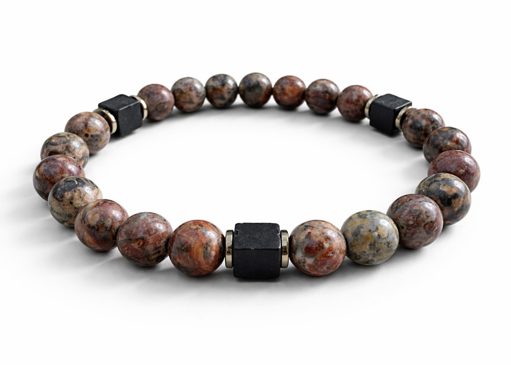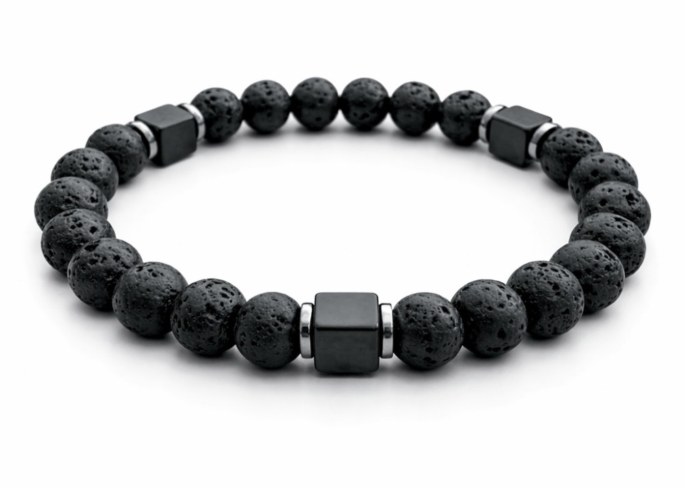 BRANSOLETKA 8 MM LAWA WULKANICZNA / HEMATYT ZŁOTA KOSTKA