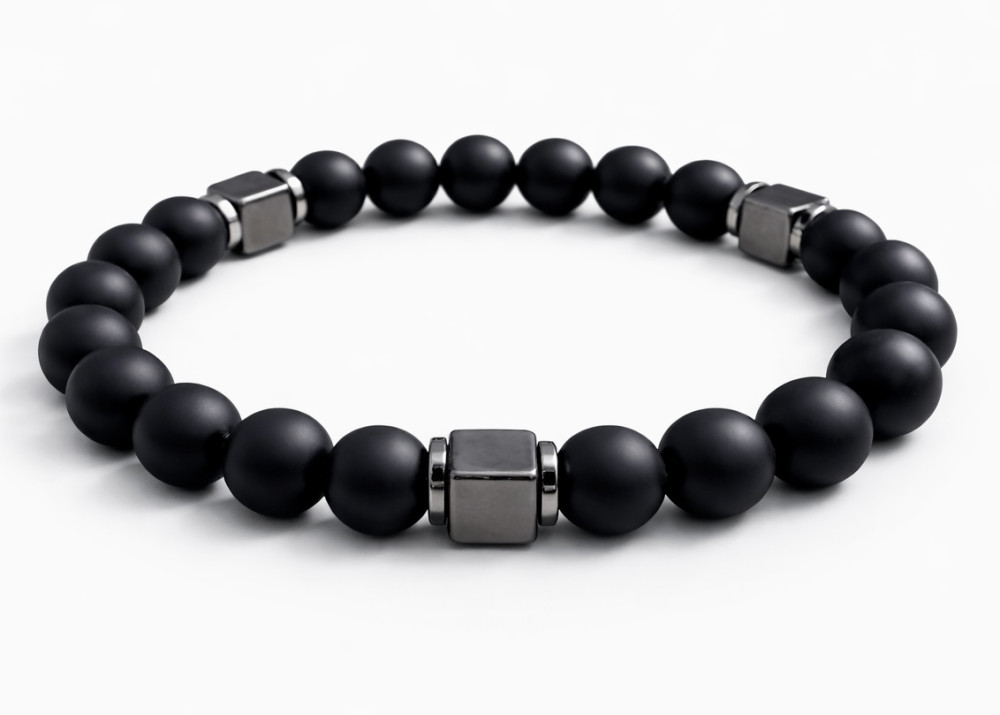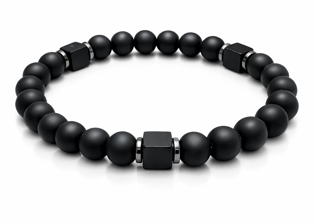 BRANSOLETKA 8 MM ONYKS MAT / HEMATYT GHAN KOSTKA