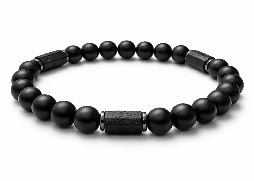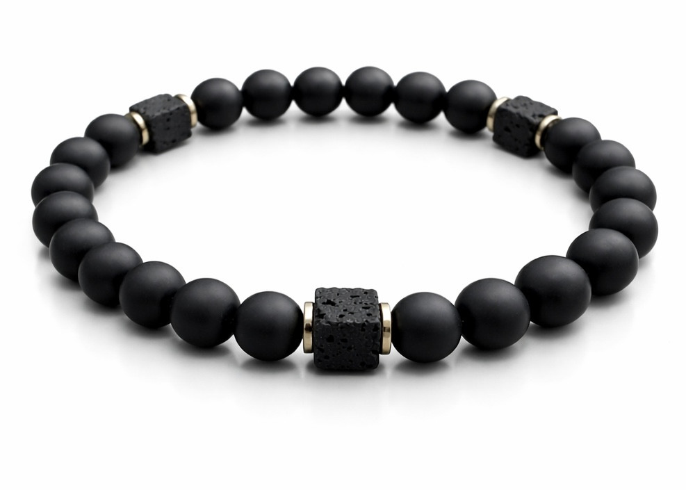 BRANSOLETKA 8 MM ONYKS MAT / LAWA WULKANICZNA