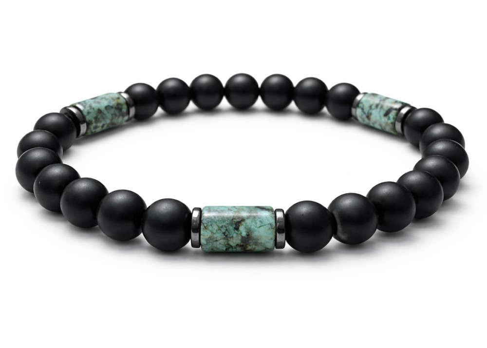 BRANSOLETKA 8 MM ONYKS MAT / TURKUS AFRYKAŃSKI