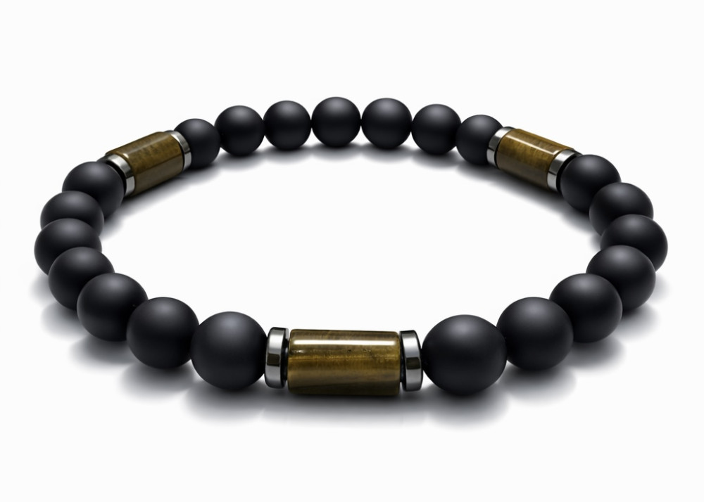 BRANSOLETKA 8 MM ONYKS MAT / TYGRYSIE OKO